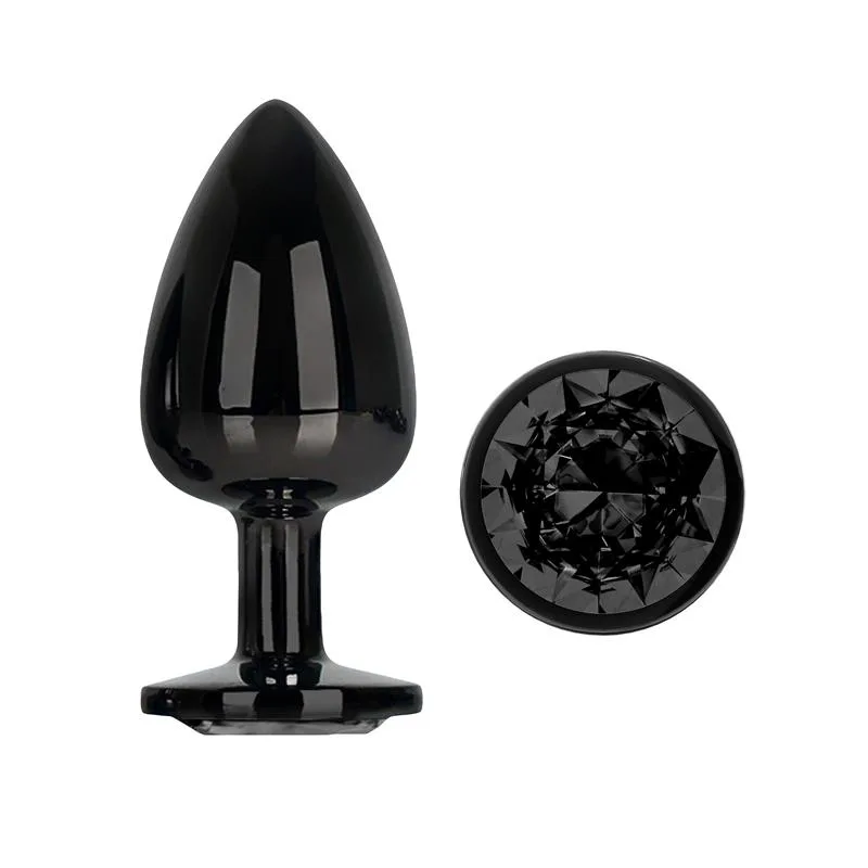 es un plug anal metálico en color negro con brillo de talla L. En la parte trasera una bonita joya, también de color negro, te permite tener una visión de lo más erótica mientras experimentáis en los juegos anales más placenteros.